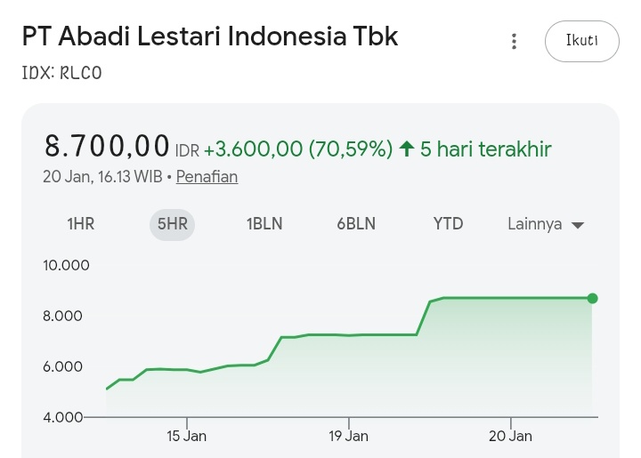 Salah satu saham yang menjadi sorotan adalah RLCO. Emiten sarang burung walet tersebut terus mencatat kenaikan tajam sejak melantai di BEI pada 8 Desember 2025 dengan harga IPO Rp168. Harga saham RLCO bahkan sempat menyentuh level Rp8.700 atau melonjak lebih dari 50.000 persen, melampaui kinerja saham IPO lain seperti PT Chandra Daya Investasi Tbk (CDIA) dan PT Raharja Energi Cepu Tbk (RATU).